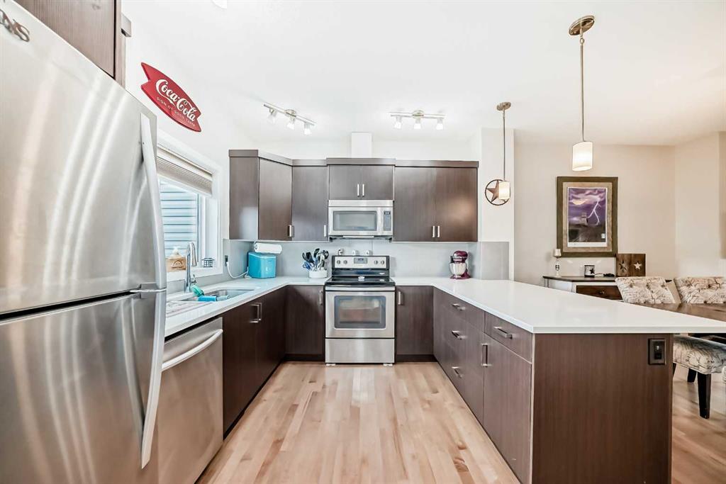 Welcome to this charming townhouse in the vibrant community of Heritage offering exceptional value. Featuring a bright, open-concept main floor with kitchen, living, and dining areas that flow perfectly for everyday living. The kitchen features stainless steel appliances, an eating bar & pantry. Ample natural light and a convenient 2-piece bathroom complete the main floor. Direct access to the back deck with a gas BBQ hookup leads to the generous south-facing yard. A single car parking pad provides practicality with the opportunity to increase the property’s value by adding a garage in the future. Upstairs, the well-designed layout includes two spacious primary bedrooms, each featuring an ensuite and walk-in closet, along with a laundry room and linen closet. With your vision, the unfinished basement will add additional living space, and features like on-demand hot water give this home energy efficiency. Located close to Cochrane’s amenities, restaurants, parks, and pathways, this home combines comfort & great value!